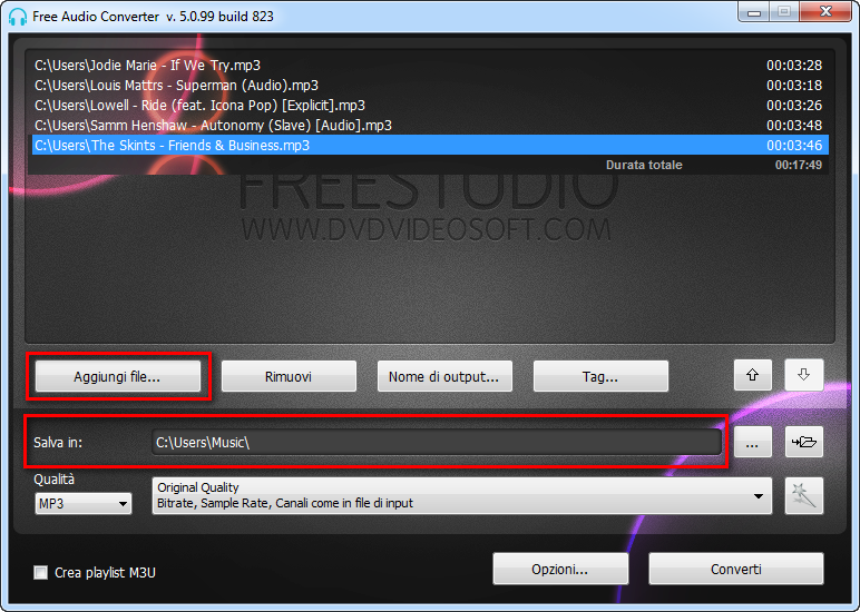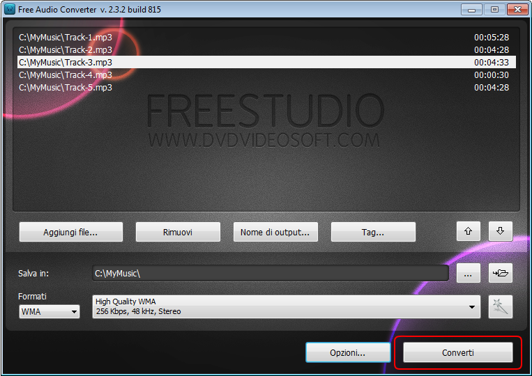Come funziona Free Audio Converter